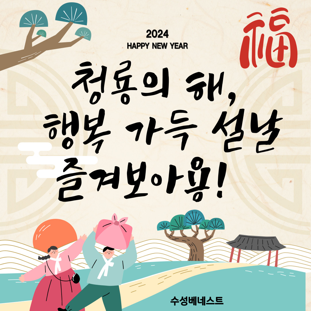 [수성베네스트] 설 명절 프로그램 '청룡의 해, 행복 가득 설날 즐겨보아용!' 수성베네스트 0 222 2024.03.04 11:00 안녕하세요, 수성베네스트입니다~!설 명절을 맞이하여 '청룡의 해, 행복 가득 설날 즐겨보아용!' 프로그램을 진행하였습니다~직원과 회원이 함께 모여 오전에는 떡국과 전을 만들어 먹고, 오후에는 신나게 윷놀이, 제기차기, 투호놀이, 수성노래자랑을 하며 가족 같은 따뜻함을 느끼고 서로 화합할 수 있는 즐거운 시간이었습니다~모두 새해 복 많이 받으세요! 감사합니다~!