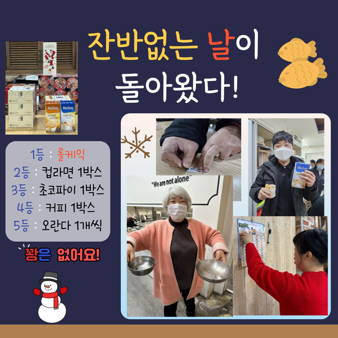 [비콘] 잔반 없는 날 비콘 0 312 2024.01.03 13:41 행복하세요 비콘입니다 :) 상반기에도 인기가 엄청! 났던 "잔반 없는 날"이 하반기에도 어김없이 돌아 왔습니다~~!!! 다들 1등을 위해서 오늘만큼은 더 깨끗히 먹고!! 잔반도 없고, 선물도 받고~ 1석 2조였습니다 ㅎ.ㅎ 다들....오늘만큼만 잔반이 없었음 좋겠네요~~ 환경도 아끼고! 선물도 받는!! 기분 좋은 하루 되셨길 바래요