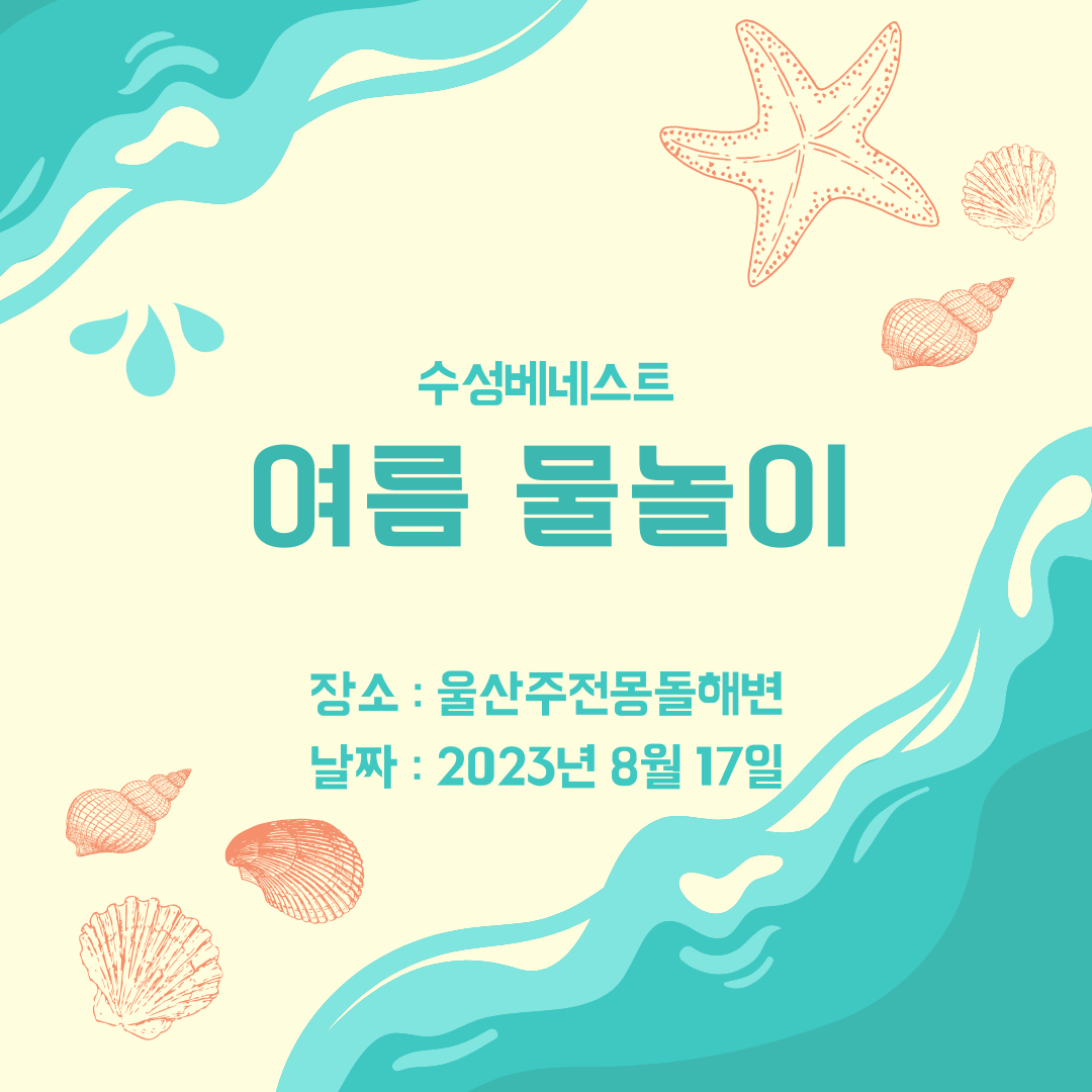[수성베네스트] 수(水)성베네스트 물놀이 수성베네스트 0 371 2023.08.31 17:02 행복하세요! 수성베네스트 입니다.저희는 8월 여름 물놀이를 다녀왔습니다~태풍으로 인해 물에 들어가서 즐기지는 못하였지만, 바다를 감상하며 여유를 느낄 수 있던 시간이었습니다~또한, 산책과 레크레이션 등 다양한 대체 활동을 통해 즐길 수 있었습니다.앞으로도 수성베네스트에서는 다양하고 다채로운 활동을 진행할 예정이니 많은 관심 부탁드립니다!