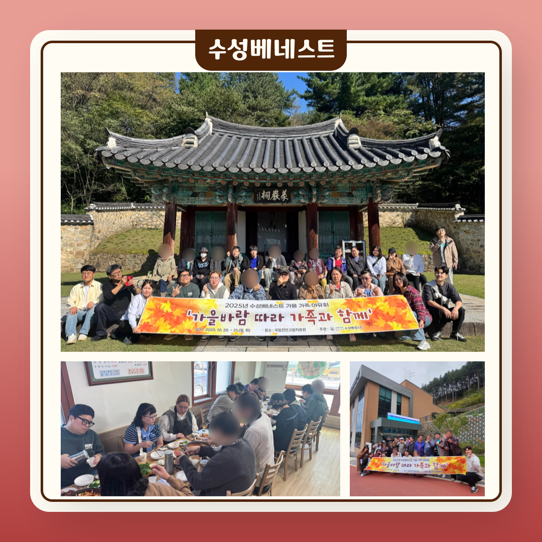 수성베네스트는 지난 10월 20일(월) ~ 10월 21일(화) 가을 가족 야유회로 국립진안고원산림치유원을 방문하였습니다.
