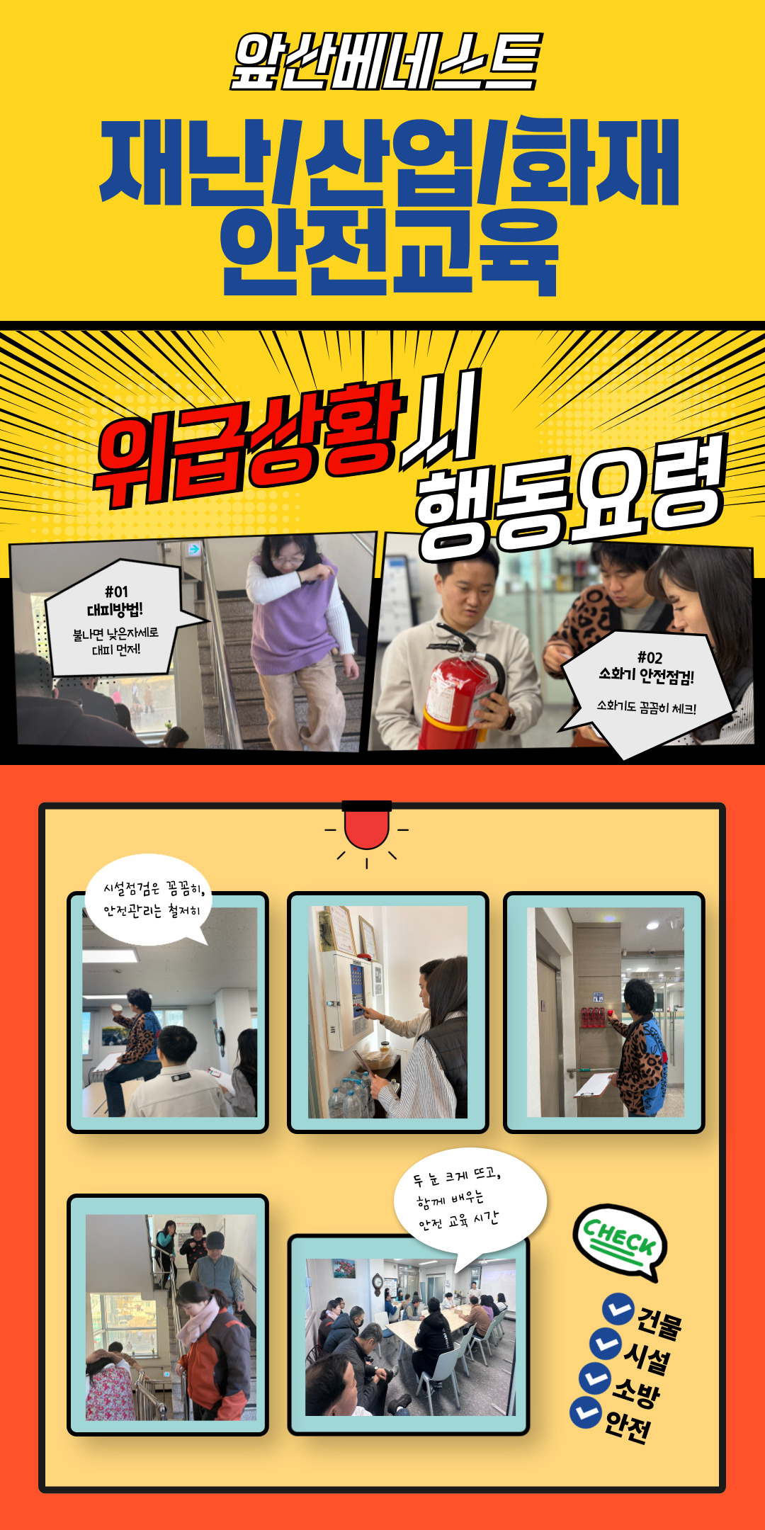 앞산베네스트는 앞으로도 정기적인 점검과 교육을 통해 안전을 최우선으로 하는 환경 조성에 최선을 다하겠습니다.