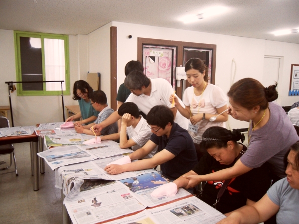 회원들과 함께 이상동몽 행사를위해 손모양을 본뜨는 조형물 함께 만들었다.