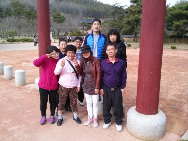 회원들과팔공산을오르기전에 선생님 및회원들과포즈를취했다.