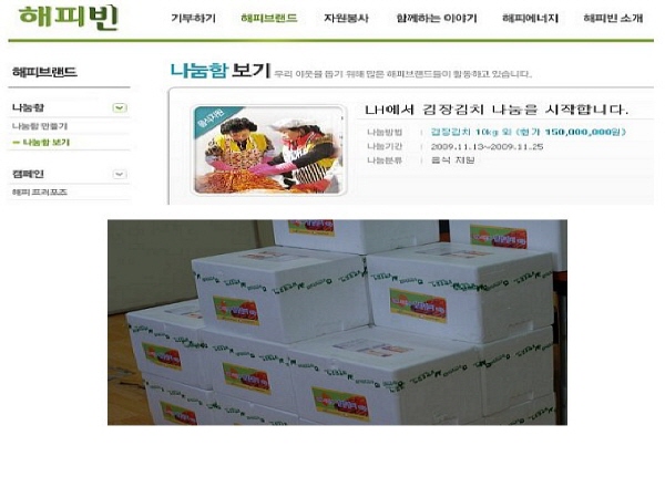 11월에 해피빈 해피브랜드에 신청했던 김장김치가 선정되어