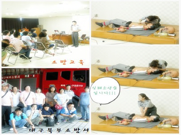 8월28일 금요일 대구 북부 소방서에서 소방 훈련 교육을 실시 하였습니다 . 대구위니스와참누리 회원들과소방 안전교육을 받았습니다.시청각 자료를 통해서 불이 어떻게 발생하는지 알게되었고, 사람이 다쳤을때 응급조치 하는 방법을 배우는 유익한 시간이 되었습니다.