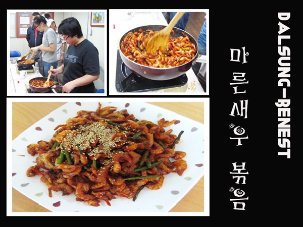 발그스레한 마른새우와 마늘쫑을 달달 볶다가....
