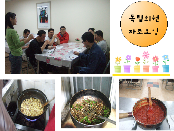 모두들 협력하여 음식을 준비하고, 음식을 함께 만든 후 담소를 나누면서 정리하는 시간을 가졌습니다.