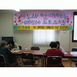 수성베네스트에서는 매달 가족들과 함께하는 프로그램을 실시하고 있습니다.. 이번 달에는 정신건강의 달을 맞이하여, 수성구 정신보건센터와 연계하여 이웃과 함께하는 프로그램을 실시하였습니다. 수성구에 있는 재가 정신장애인과 가족들을 모시고, 심리검사 및 가족모임을 실시하였는데요.. 비록 날씨 때문에 많은 사람들이 참석하지는 못했지만... 가족들의 스트레스 정도도 알고 상담을 하는 시간을 가지고, 가족들과 함께 모임을 가졌습니다.. 앞으로도 계속 될 Open Program 기대해 주세요.. ^^*