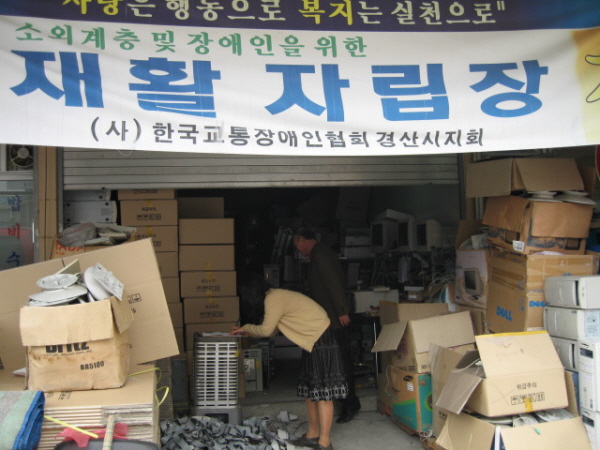장애인 정보화협회에서 컴퓨터를 4대 기증 받아 싣고 오는 모습입니다.