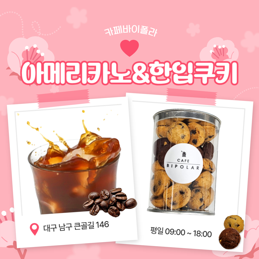 [앞산베네스트] 벚꽃구경에는 카페 바이폴라! 앞산베네스트 0 183 2024.04.05 14:32 안녕하십니까 앞산베네스트입니다.벚꽃이 만개하는 봄이 왔습니다. 앞산은 꽃놀이하기 좋은 명소인지라 많은 분들이 봄이 되면 많이 찾아오십니다.봄나들이의 대명사, 앞산.카페 바이폴라에서 시원한 아메리카노와 달콤 바삭한 한입쿠키를 챙겨가신다면간편하고 맛있는 디저트가 우리의 봄을더욱 더 달디 달게 만들어줄 것 같습니다.여러분의 많은 응원과 관심 부탁드립니다.감사합니다.