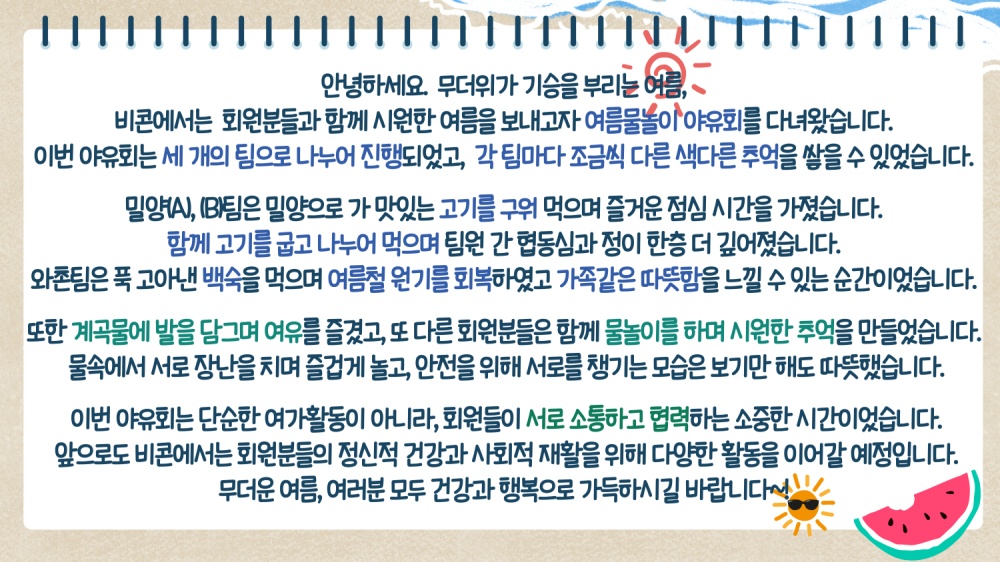 [비콘] 2025년 여름 물놀이 야유회 '물놀이 하GO, 고기먹GO'